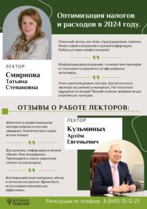 Вы еще успеете приобрести запись семинара на актуальную тему: «Оптимизация налогов и расходов в 2024 году. Разбираемся, как законно сэкономить на налогах, и анализируем судебную практику.»